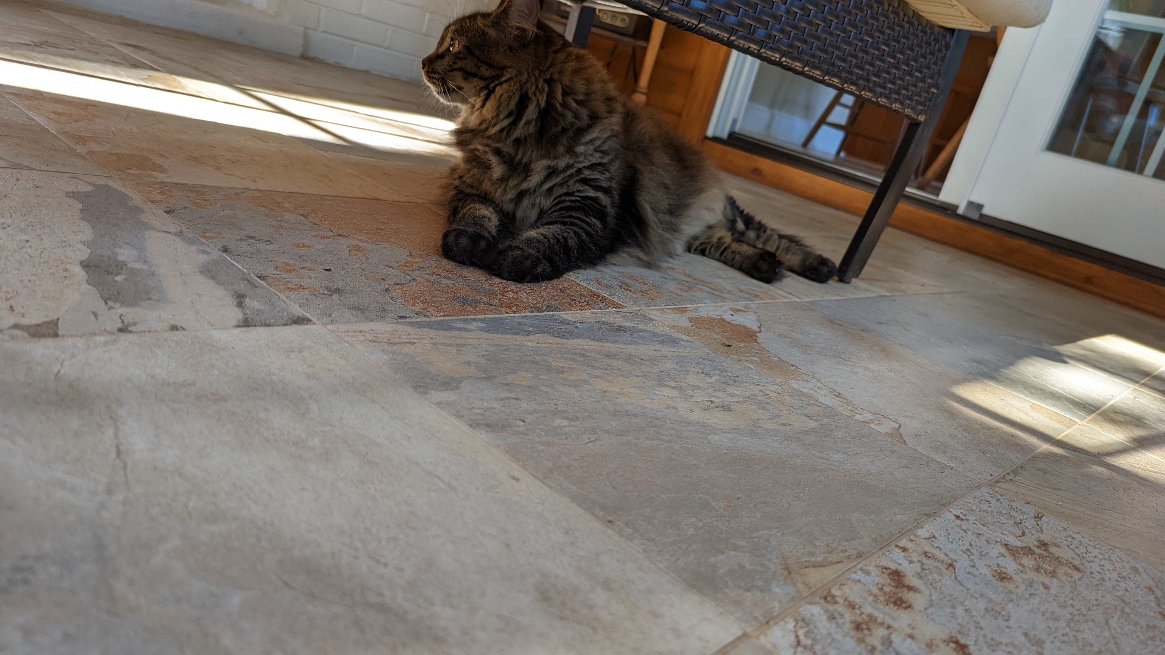 This morning the lady human played with us a little then both the humans who live in the house left. It seems like another strange day. At least our feeder works.