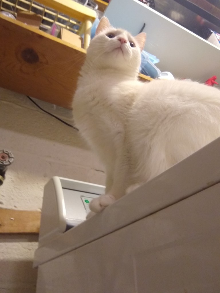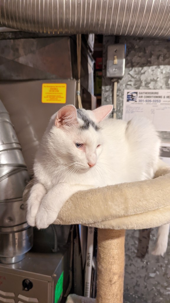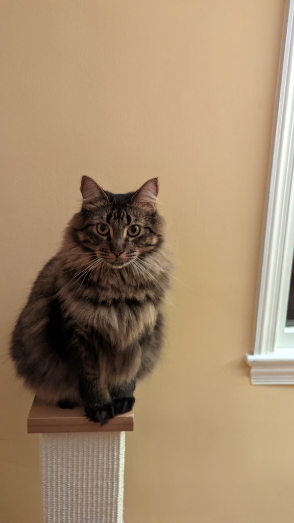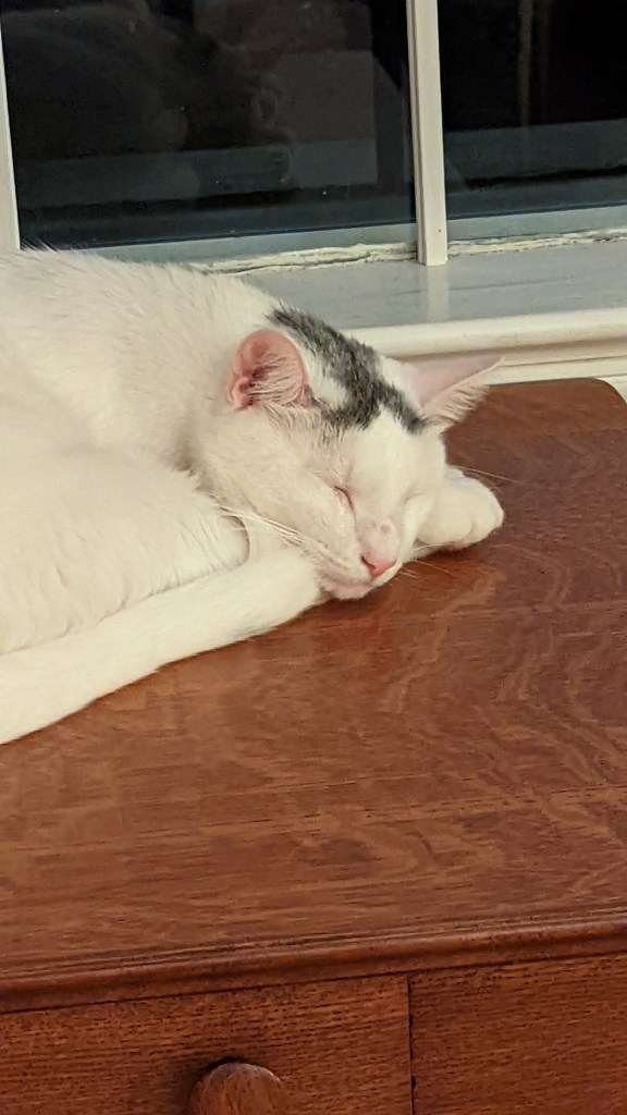 I find it so sweet that both cats seem to adore each other. One day I saw them grooming each other. A few days later, Pony was aggressively grooming Waffle. His front paws held her in a hug while his back leg seemed to be making sure she wouldn’t get away. Not sure what that was about — but he was really licking her head and neck. Waffle eventually got tired of it and swatted him.