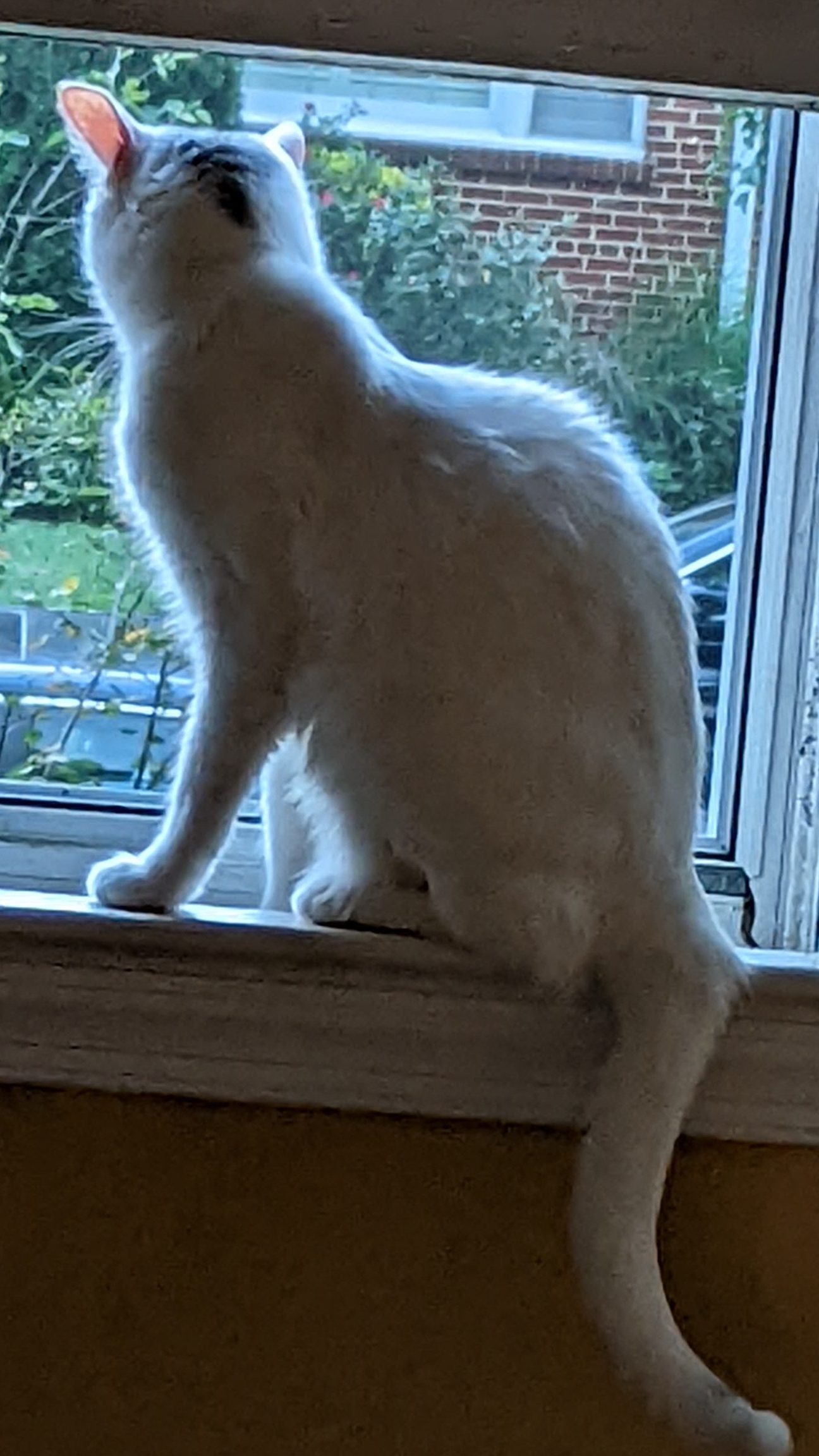 One morning a few months ago we were minding our own business, looking out the windows in the window room. Pony saw a squirrel and pounced at it and suddenly, after a very loud noise the window disappeared. Pony walked to the disappeared window to investigate and then he disappeared! I didn’t know what to do so I looked for Pony and saw him OUTSIDE! He told me to join him, so I jumped and ended up on the outside floor.