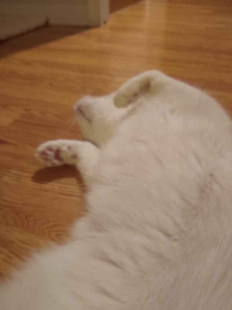 Yeah, I have been sleeping in a guest bedroom this week. Dean came home from Mexico with a pretty nasty tummy bug and Waffle’s description of it as the yelling sickness is pretty accurate. Since I was getting a good night’s sleep, I just kept sleeping in the guest bedroom. Last night, was different since Waffle really wanted in the room with me. She woke me several times with her scratching and meowing, so I eventually relented and let her in. Kind of a mistake since she took up most of the twin bed. After she left (at 3am) I closed the door again, but she came back a few times and woke me up, scratching at the door.