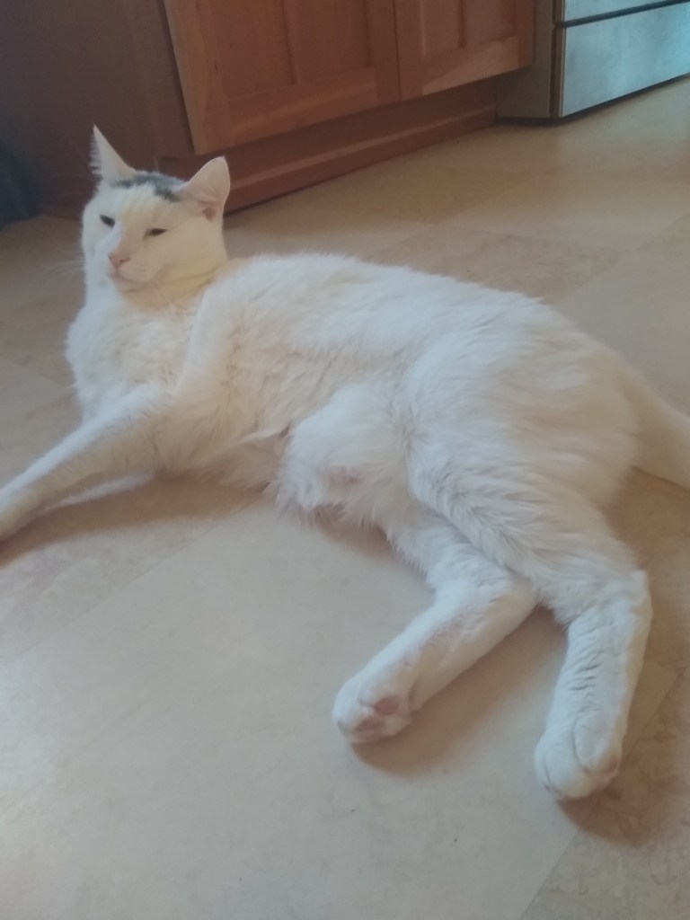 I’m feeling a little better. I still don’t understand what’s going on, but the humans here are nice enough. I even let the lady human pick me up a couple of times, but only briefly. Still not ready to let her rub my belly though.