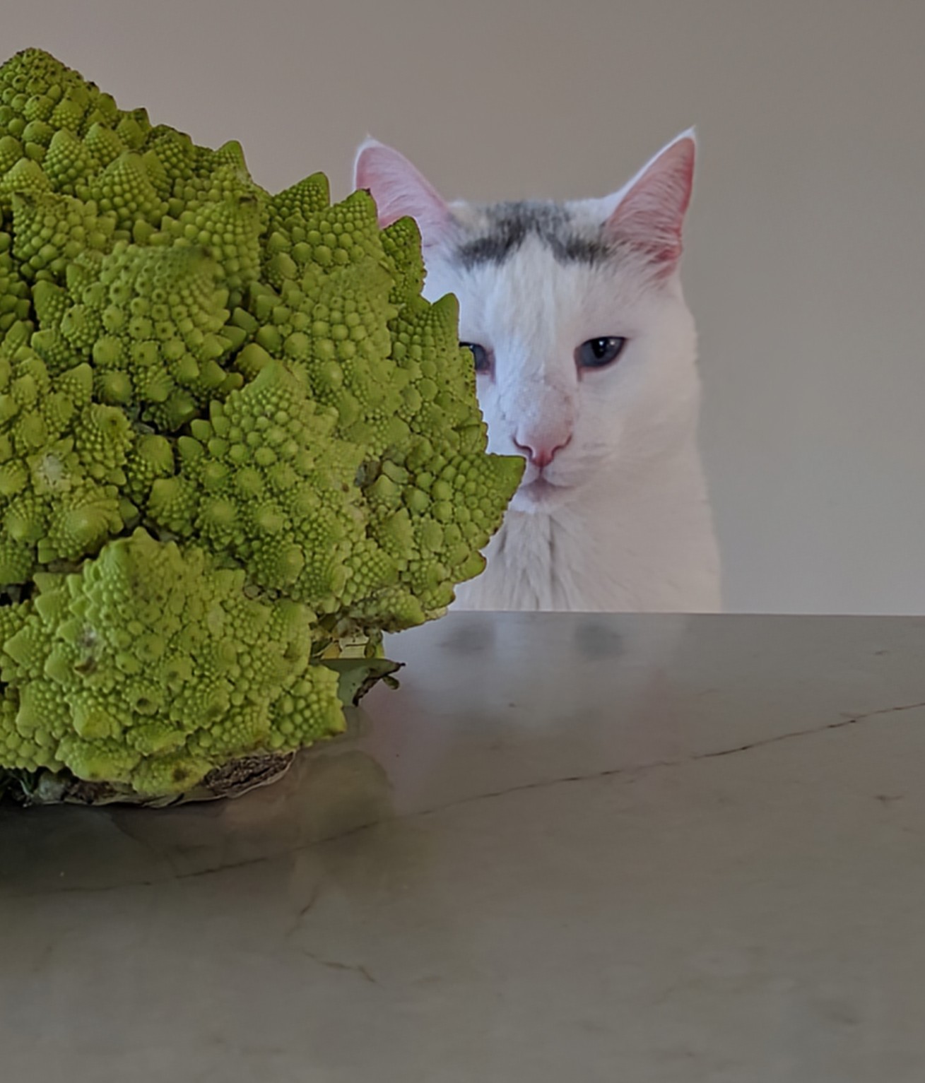 I was taking a photo of the romanesco and Pony popped his head up behind it so I took his photo too and uploaded it to Threads. It got a fair number of views. A cookbook author really liked it.