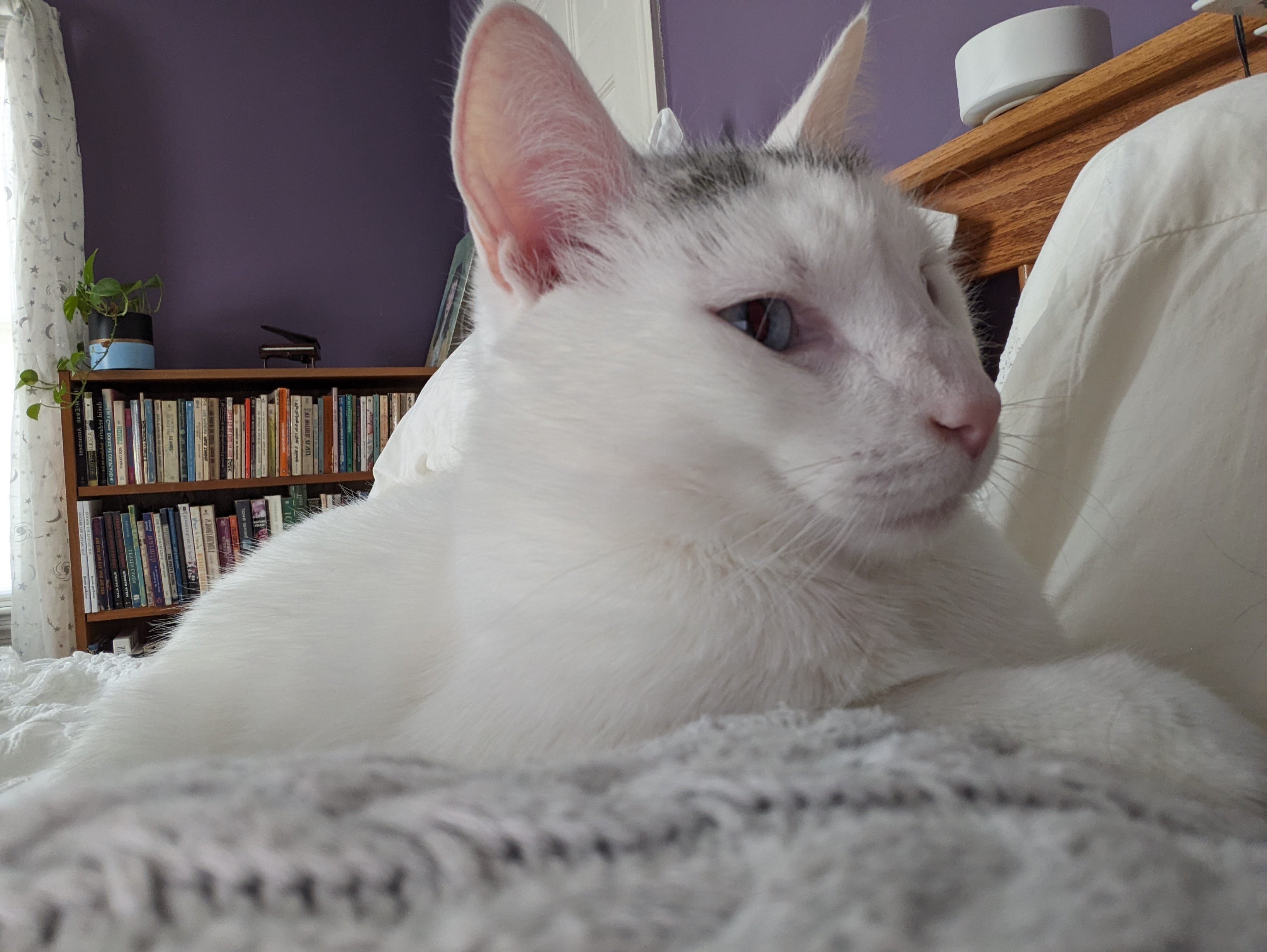 The loud human has been gone this week and Waffle has spent time sleeping with me in bed.